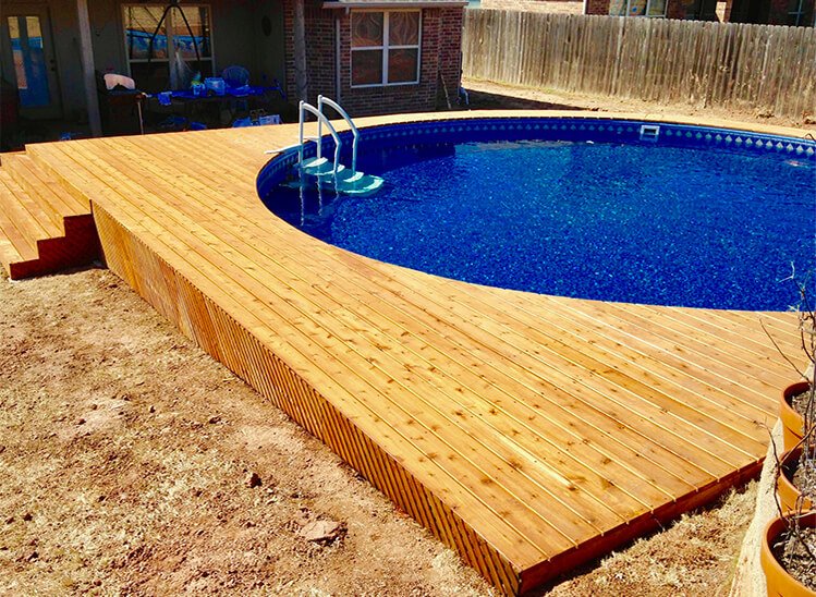 You can have any type of paneling or decking around a Stealth Semi-In Ground Pool, from wood decking to poured concrete. Adding decking furthers the look of a traditional inground pool while providing an area for you and your guests to lounge, dine, and enjoy the fun in the sun.
