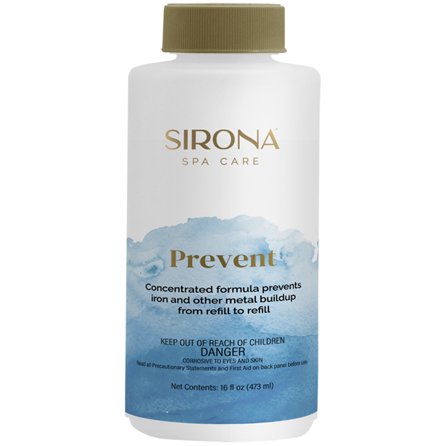 • Sirona Specialties Prevent – A sequestering agent to protect spa surfaces from metal stains.