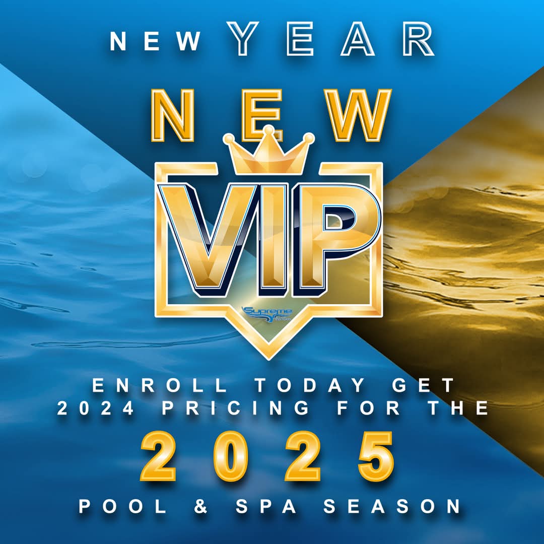 New Year, New VIP! Elevate your pool and spa experience with the Supreme Spa & Pool VIP Membership. Designed for our most valued customers, this exclusive membership grants you unbeatable benefits, including access to VIP pricing on select products and services throughout the year—and beyond!